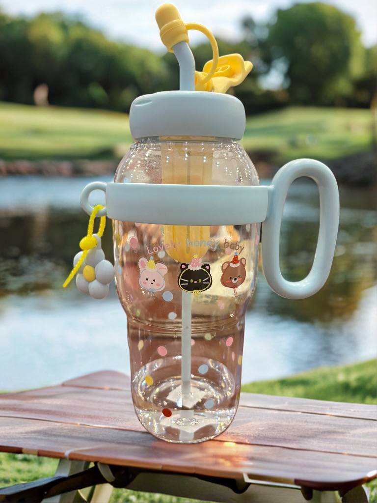 爱上喝水巨无霸水杯女生新款大容量高颜值茶水分离双饮带吸管杯子