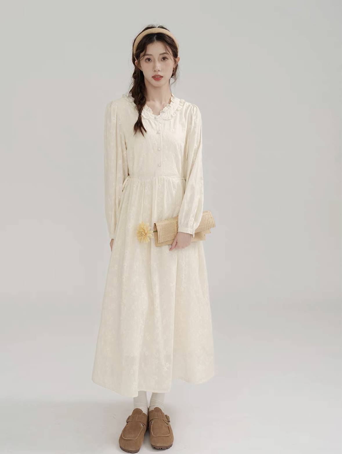 法式连衣裙女秋冬2023新款内搭白色长袖仙女温柔风V领长裙