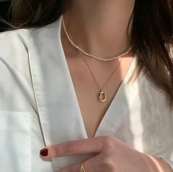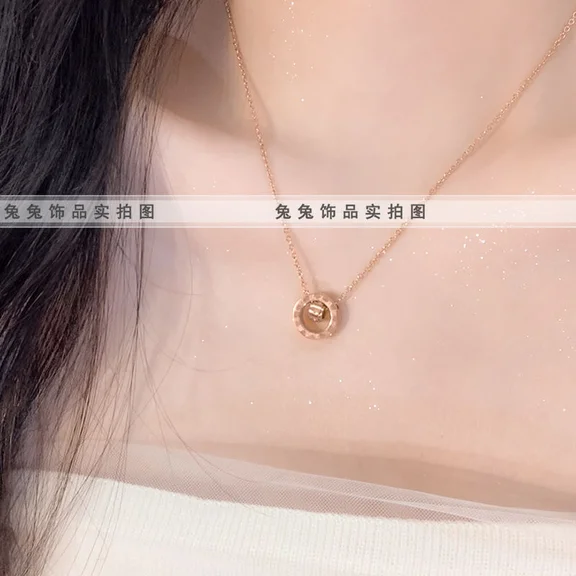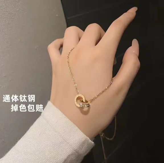 转运双环玫瑰金项链不掉色钛钢锁骨链轻奢小众