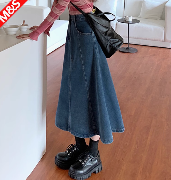牛仔裙女2019春夏新款中裙高腰半身裙显瘦A字大摆裙文艺气质伞裙