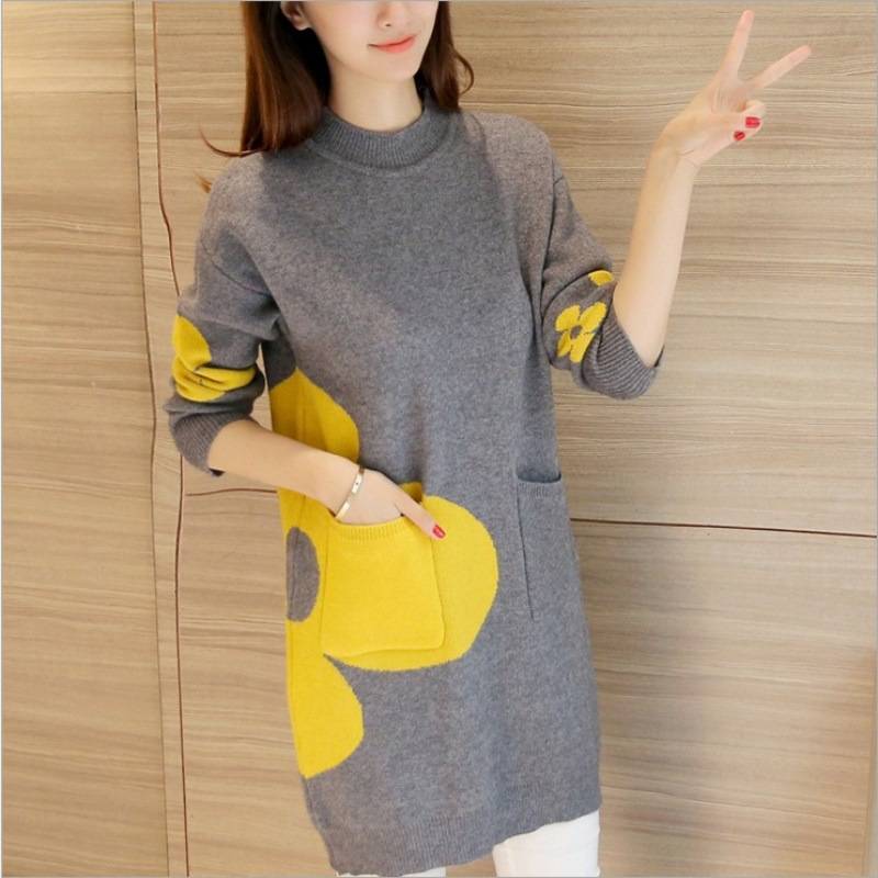 新款毛衣针织衫女2018秋季女装羊毛衫女长袖中长款开衫宽松打底衫