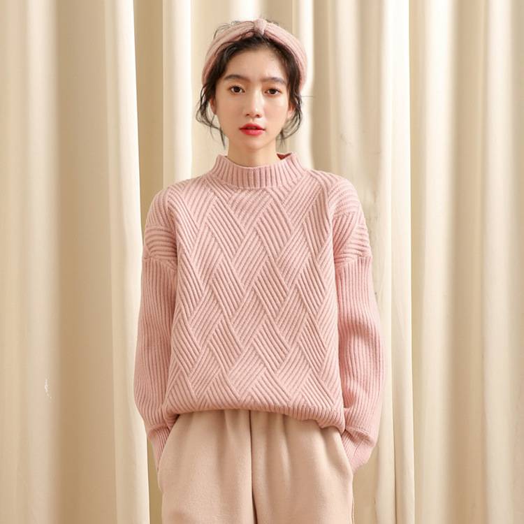 针织衫纯色百搭chic上衣秋冬2018新款韩版学生宽松半高领毛衣女装