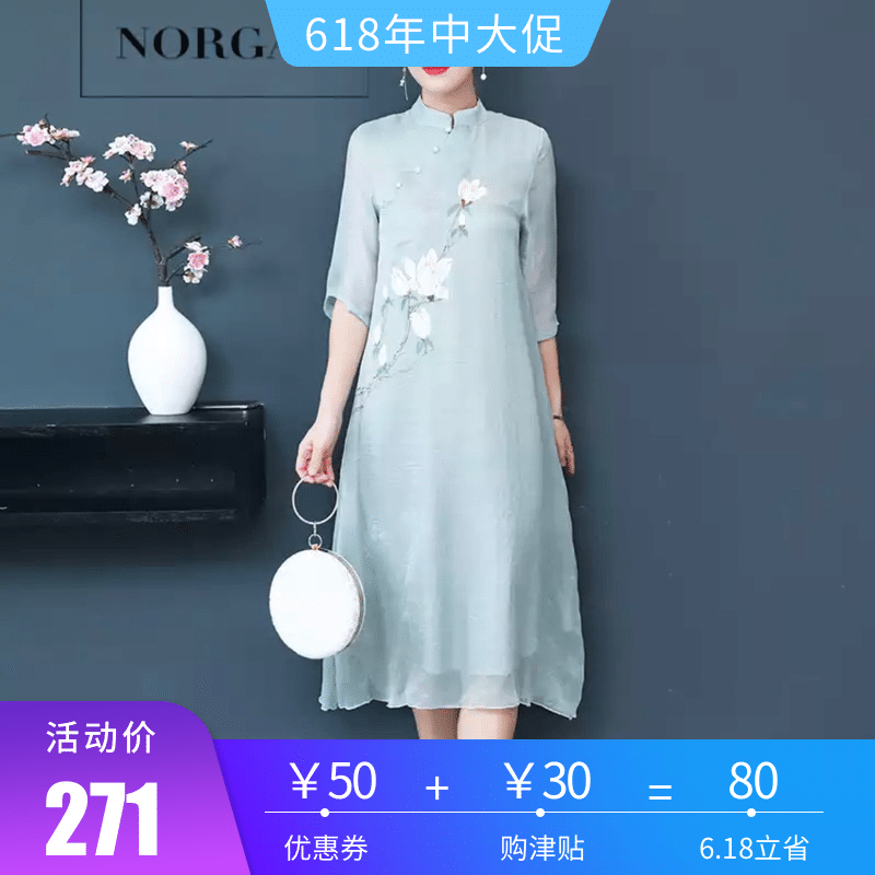 2018新款女装夏装中国风茶服女禅意宽松改良旗袍连衣裙中长款裙子