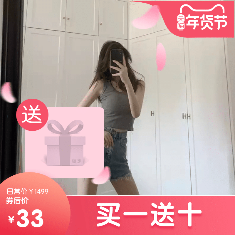 店庆修身小吊带背心女夏外穿紧身百搭纯棉短款工字大码女装打底