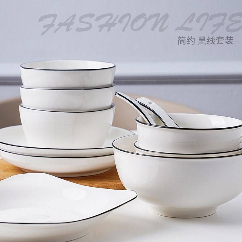 素力2025碗盘套装黑线陶瓷餐具现代简约釉下彩餐具高颜值一整套高质量瓷具