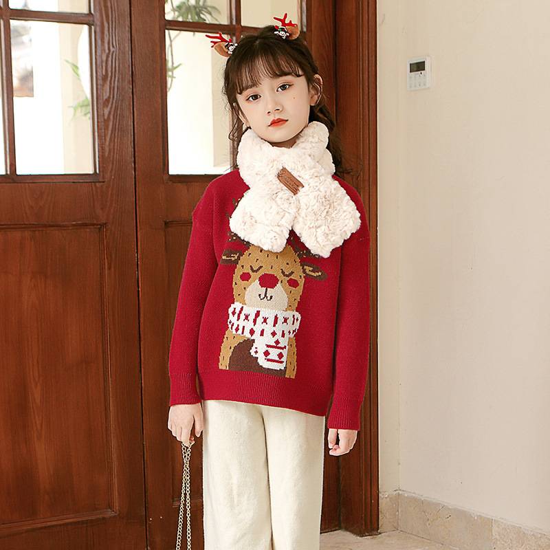 女童圣诞毛衣亲子秋冬童装女童衣服中大童加厚款麋鹿儿童毛衣