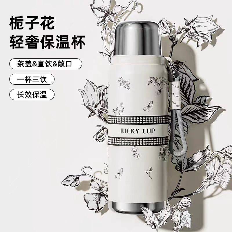保温杯女士学生栀子花水杯子高颜值大容量316l不锈钢2023新款