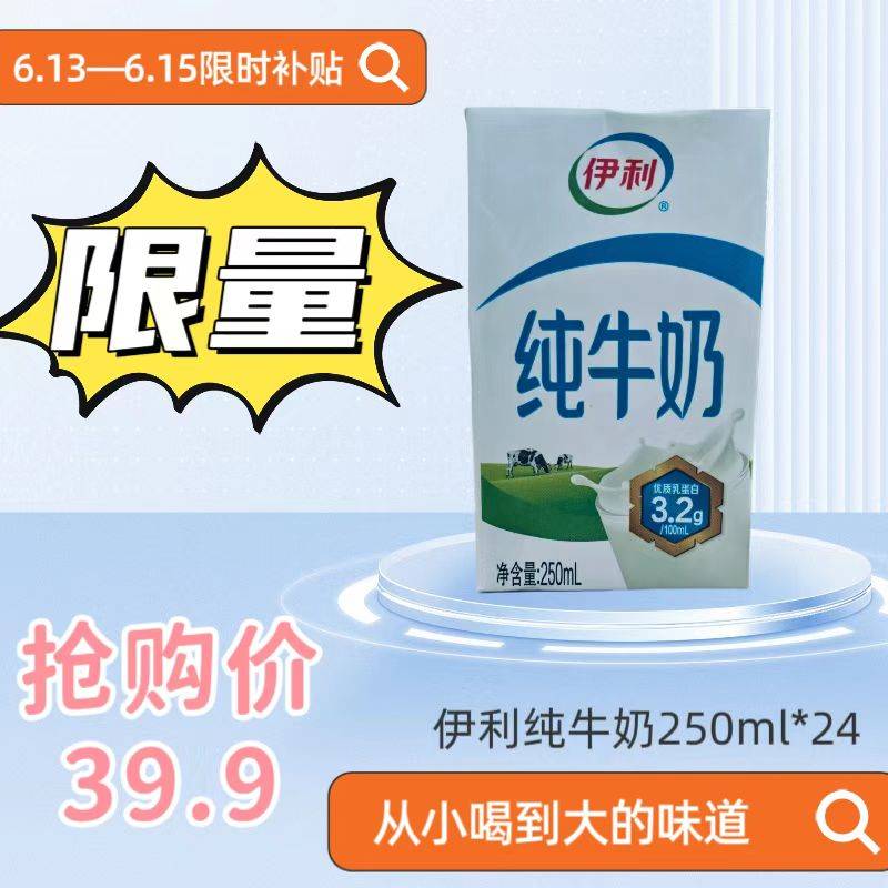 伊利2箱纯牛奶250ml*24盒营养早餐3.2g蛋白质 GQ充营养