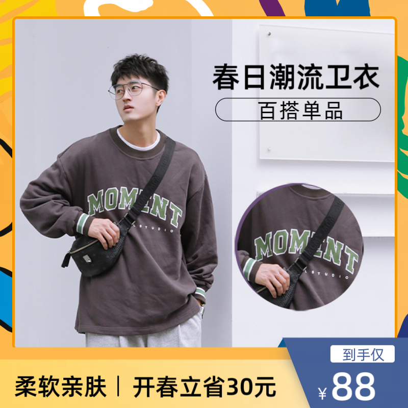 男装春季新款纯色休闲卫衣男 圆领套头长袖t恤男学生上衣