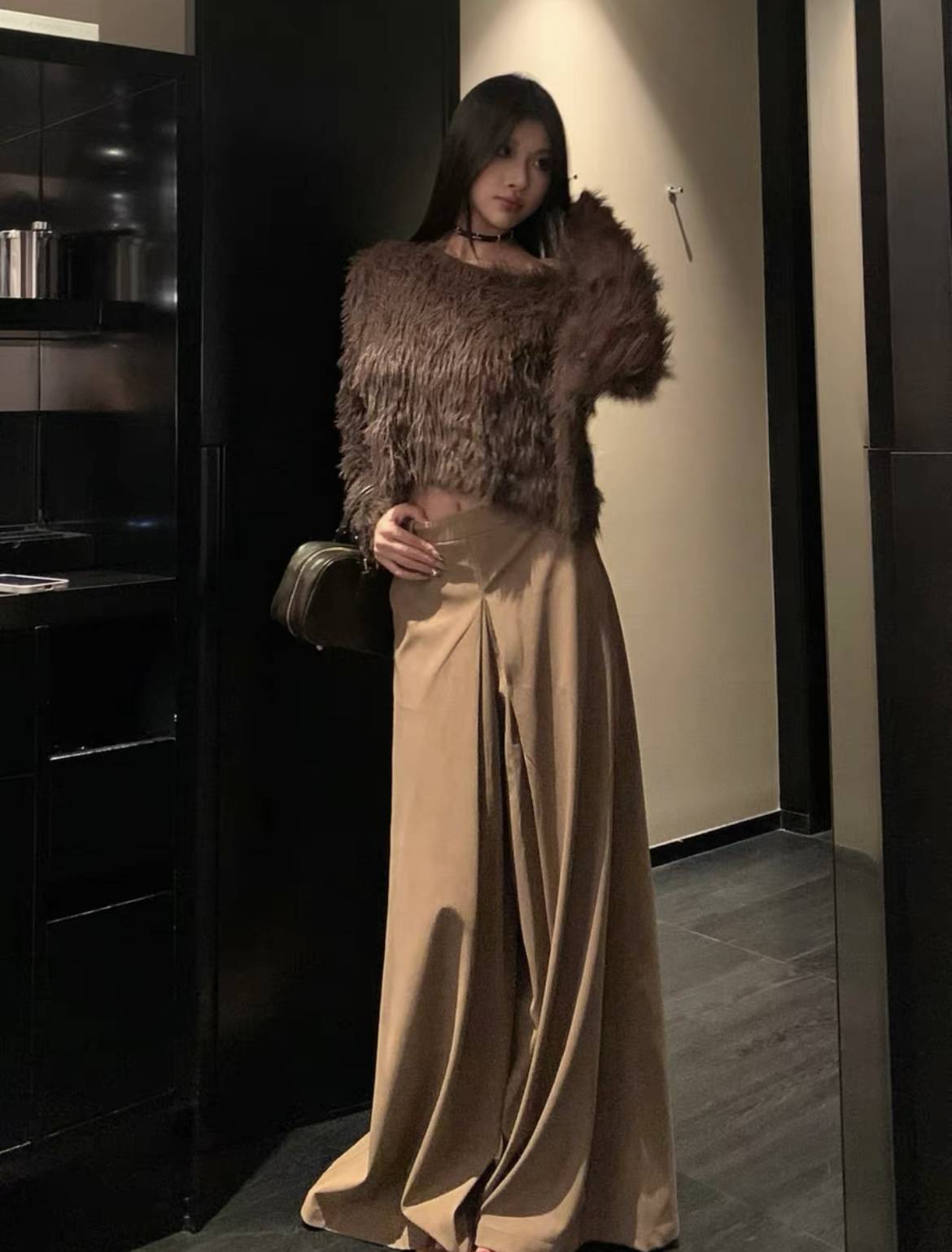秋冬香槟玫瑰亮片丝绒包臀裙中古防貂毛皮草毛毛套装