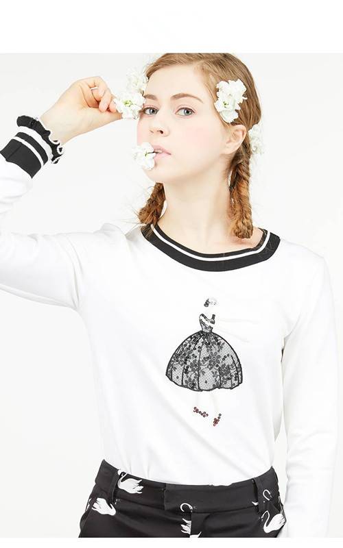 黑色长袖衬衫女polo领刺绣镂空单排多扣衬衣小清新女装