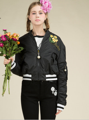 刺绣棉衣短款外套长袖立领蝙短外套女装宽松
