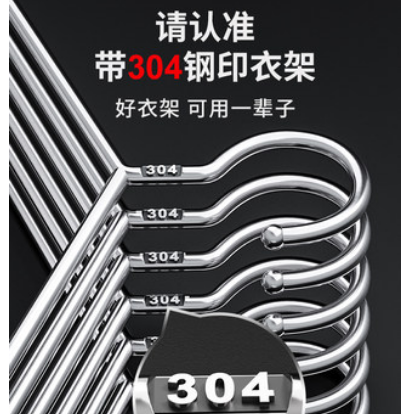 龙哥304不锈钢衣架家用挂晾衣服架子加粗加厚凉铁晒衣挂宿舍实心撑子