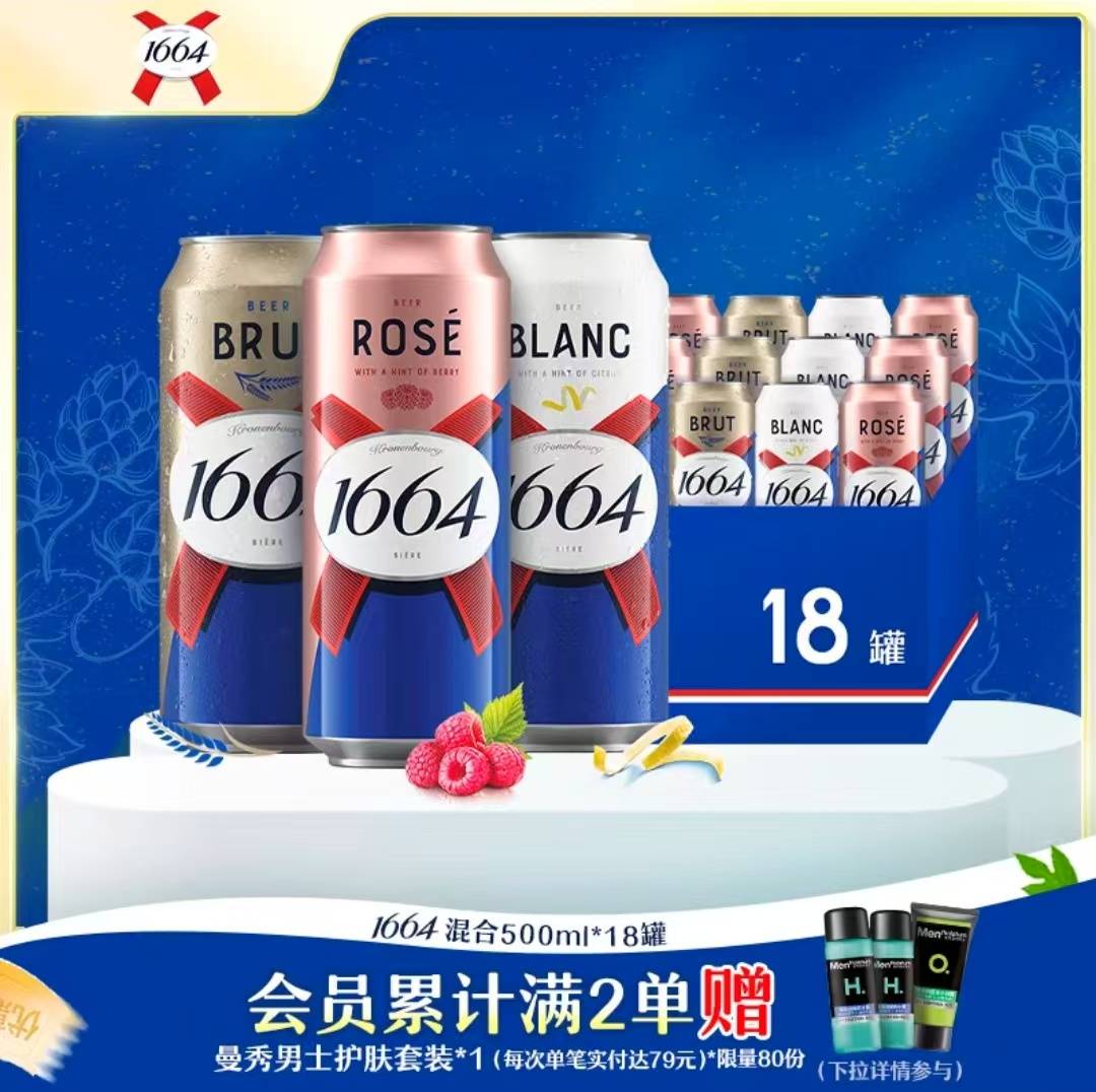 法式1664混合口味(桃红+白啤+法蓝法式拉格)500ml*18罐啤酒整箱