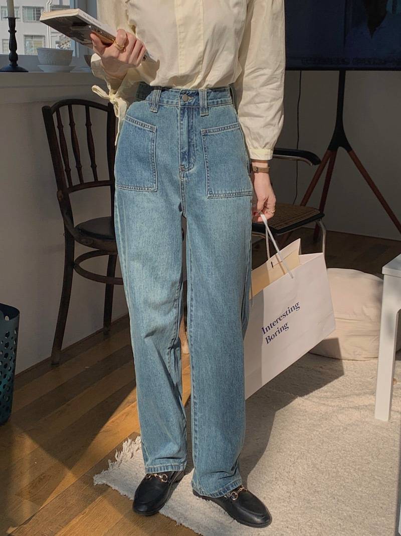 新款2022复古蓝色直筒高腰牛仔裤显瘦女春秋