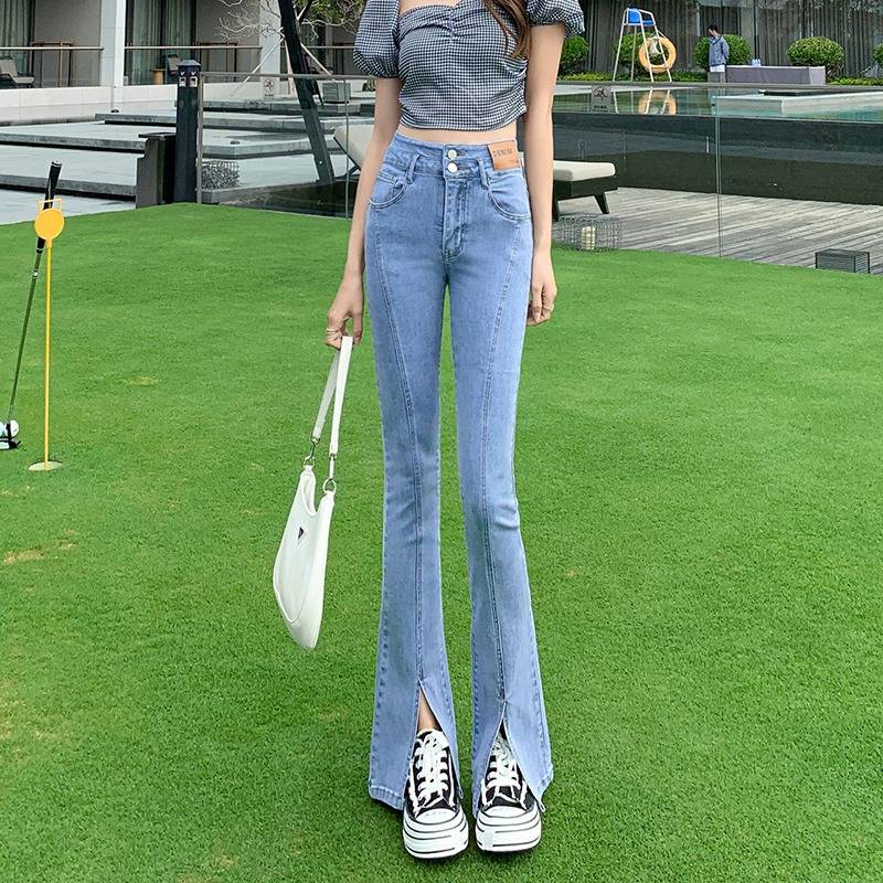 微喇叭牛仔裤女春季新款弹力高腰显瘦百搭