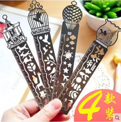 创意小绘图便携式手帐尺子多功能镂空金属书签套装