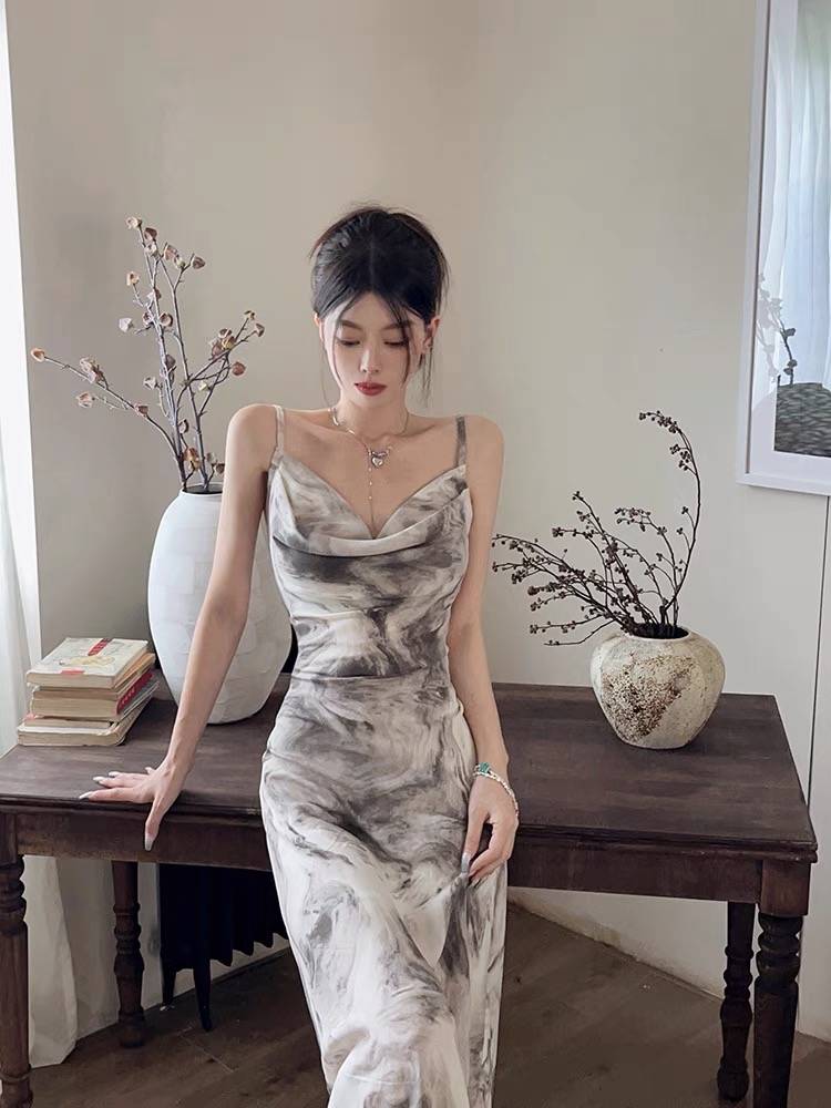 法式复古时尚连衣裙2020夏季新款女装气质百搭收腰显瘦印花裙子女