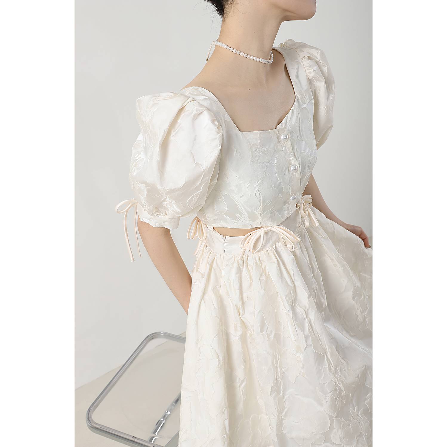 2020夏季新款品牌女装性感一字领chic淑女刺绣雪纺连衣裙