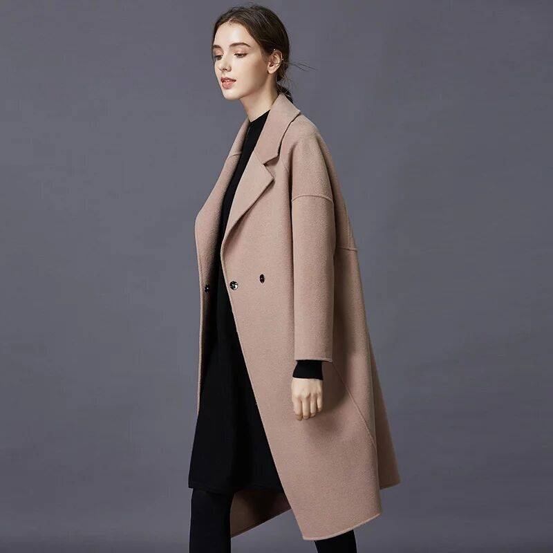 【盛宏】M家经典大衣双面羊绒大衣毛呢外套女水波纹羊绒大衣7202
