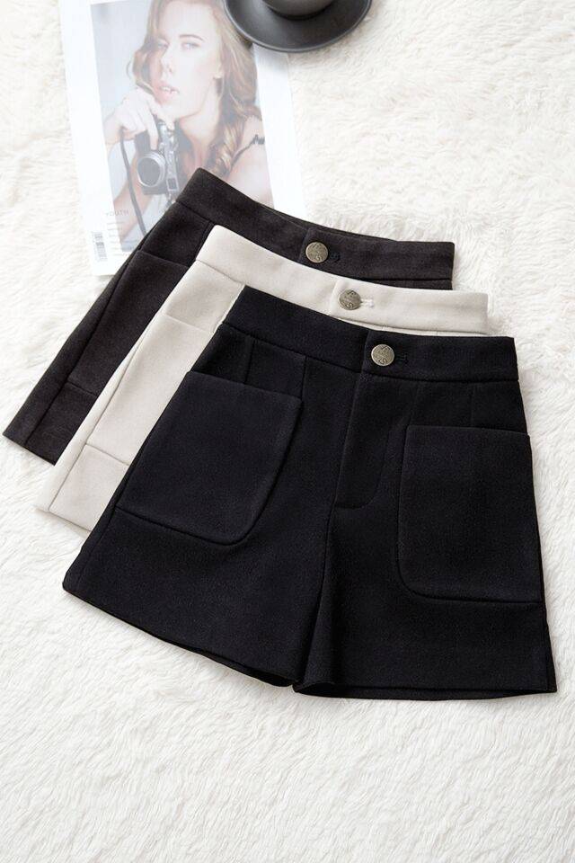 a字裤裙2024秋冬新款呢子阔腿靴短裤女不规则高腰短裙裤毛呢裤