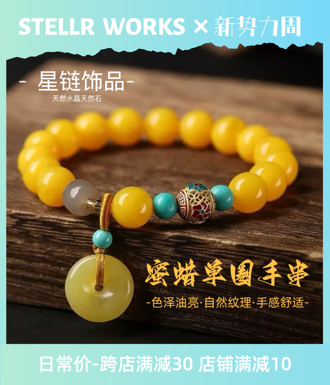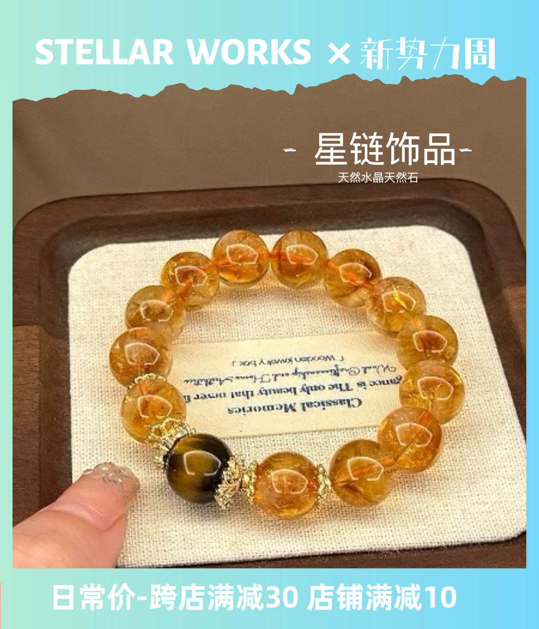 新中式黄塔晶黄水晶手链招财转运旺事业招财财富黄塔晶虎眼石手串