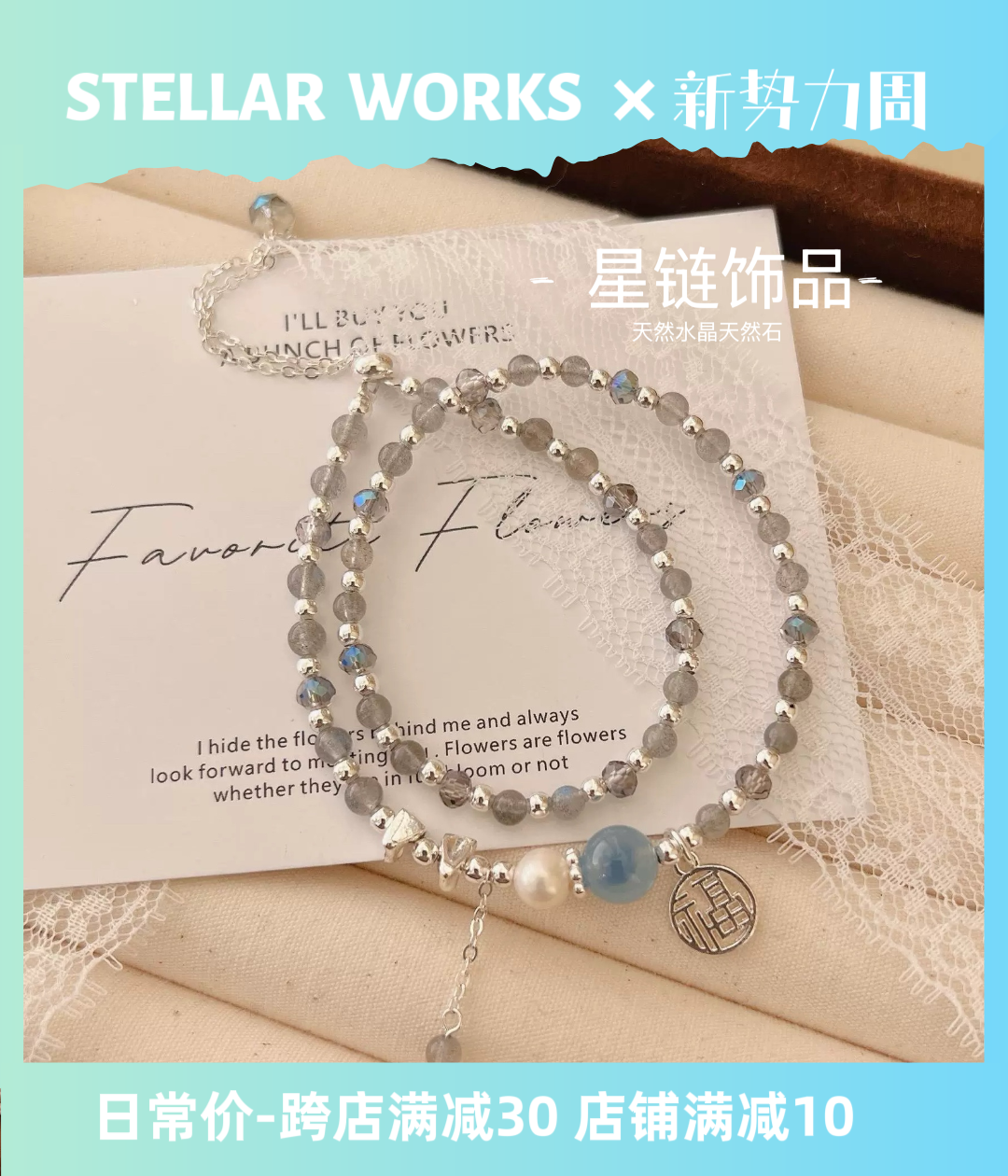 天然拉长石月光石光谱石蓝色糖心玛瑙 水晶银色双层手链手串珠子