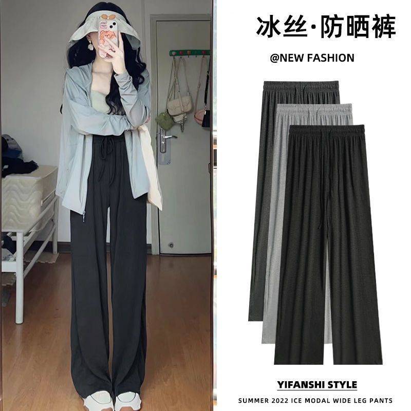 冰丝防晒阔腿裤女春夏薄款高腰垂感宽松胖mm显瘦休闲防蚊凉凉裤