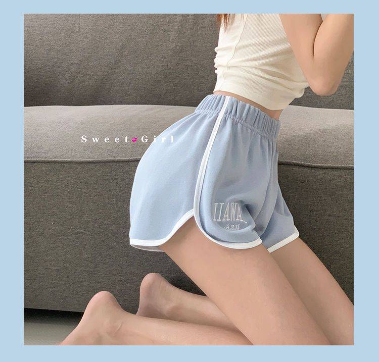【两条装】字母刺绣运动短裤女宽松休闲居家三分热裤高腰显瘦包臀