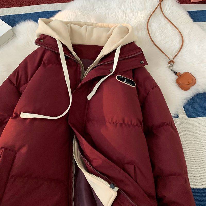 新款加厚羽绒连帽棉衣美式假两件棉服男女冬装棉袄外套男冬季2024