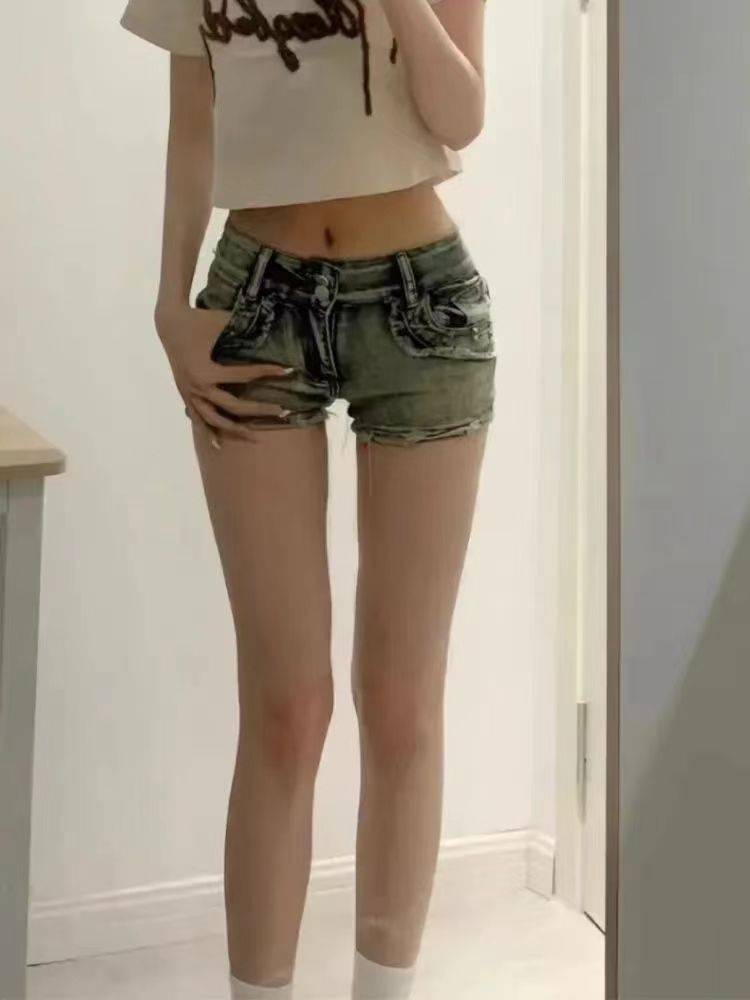 美式辣妹柳丁低腰牛仔超短裤女春夏新款修身显瘦包臀阔腿热裤子潮