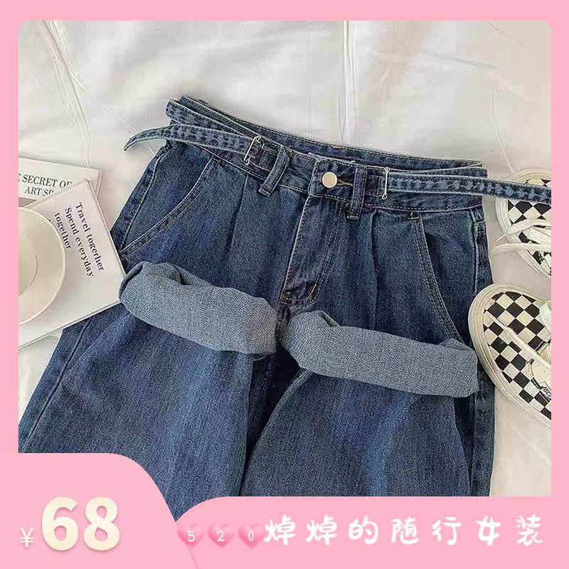 2023年春夏简约学院风百搭亲肤慵懒风女生腰部设计感随行牛仔长裤