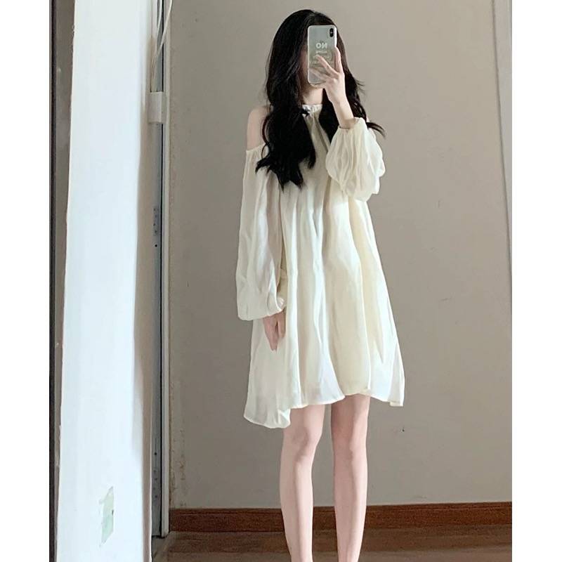 甜美风白色雪纺连衣裙女夏装2023新款茶歇法式挂脖仙女裙子