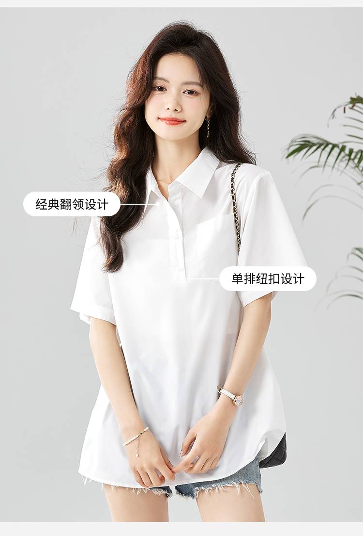 2023夏季新款polo领白色短袖宽松上衣时尚百搭打底T恤女