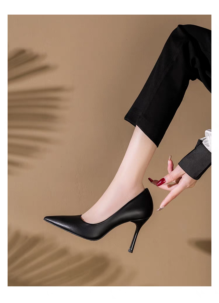 黑色绒面高跟鞋细跟尖头浅口不累脚 气质学生职业和礼仪