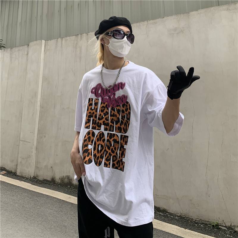 美式复古豹纹宽松T恤欧美街头潮牌慵懒风短袖ins潮oversize上衣男