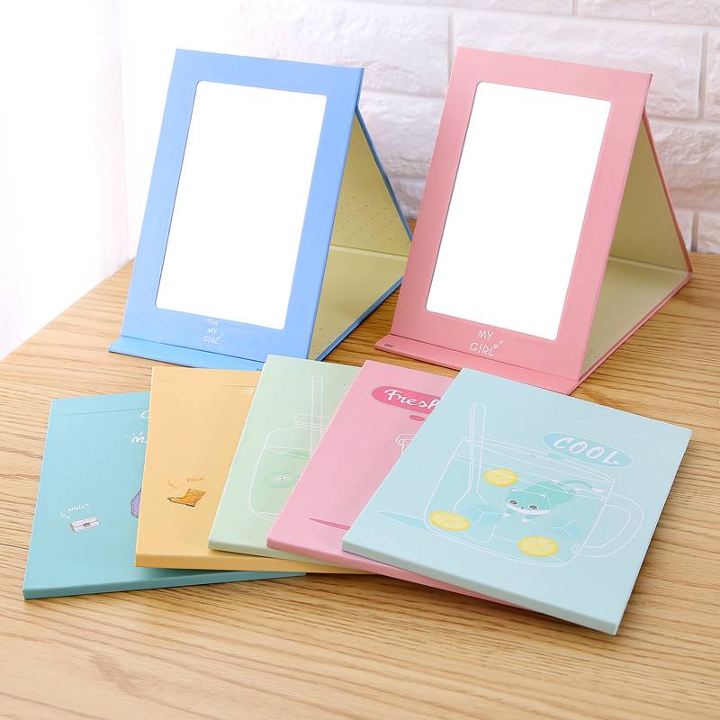 创意台式便携随身化妆镜大桌面折叠化妆公主镜可爱宿舍桌面小镜子