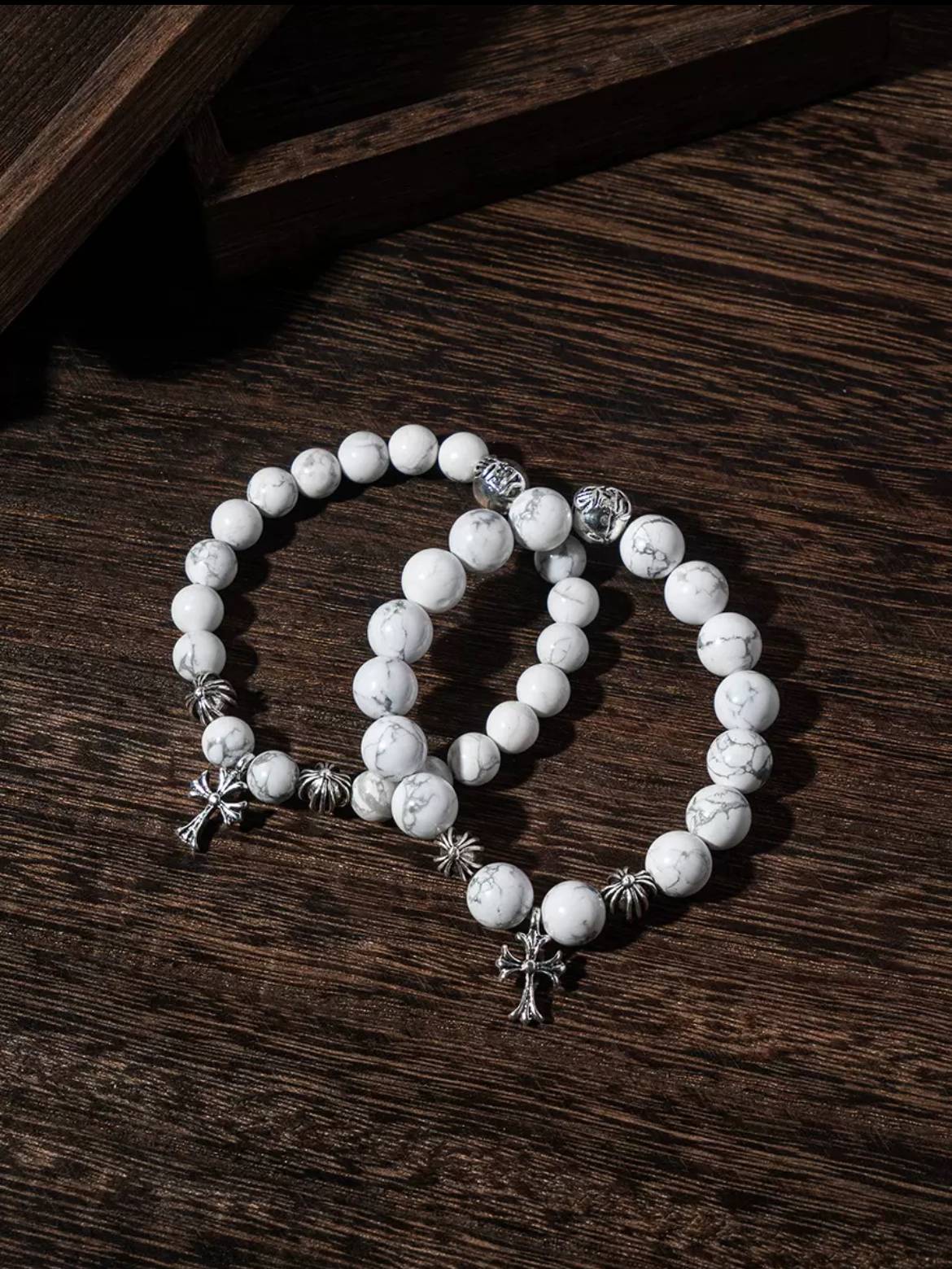 FoD 天然黑曜石白玛瑙绿松十字架珠手链手串