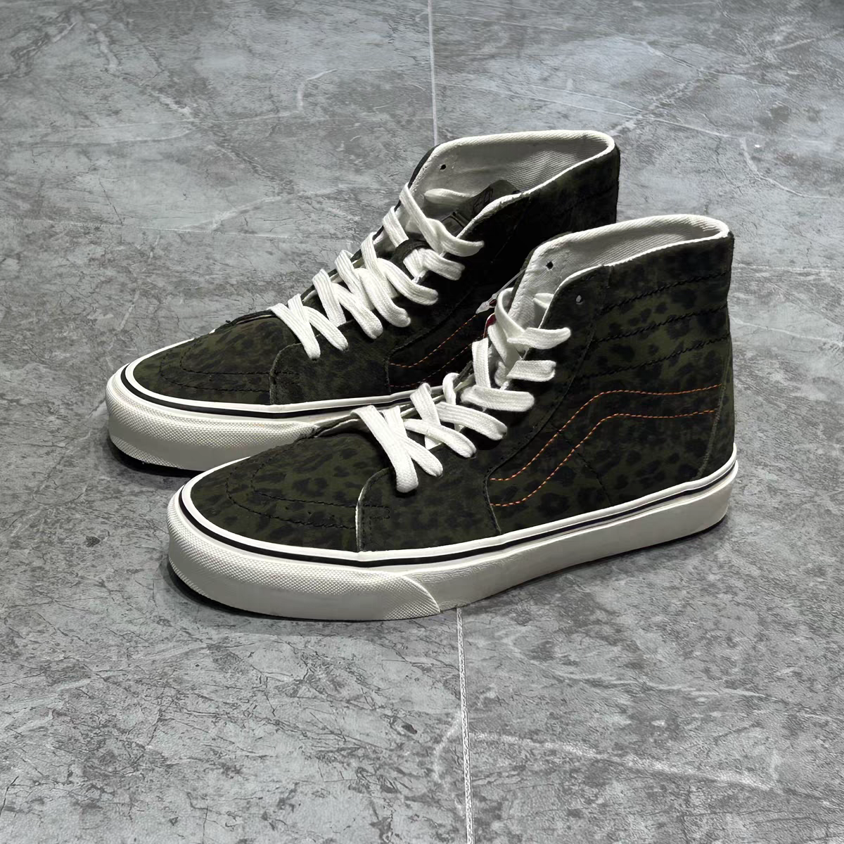 Vans Sk8Hi橄榄绿豹纹印花男女同款情侣高帮休闲板鞋
