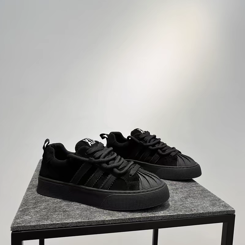 新款潮男鞋真皮贝壳头板鞋潮流百搭系带低帮鞋软底运动休闲鞋