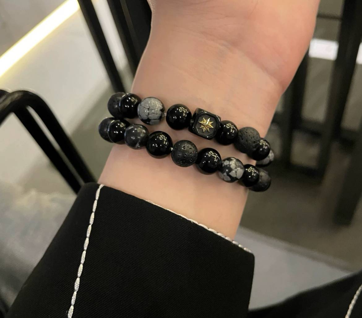 火山石黑色串珠男士手链女款小众设计高级感冷淡风情侣款国潮饰品