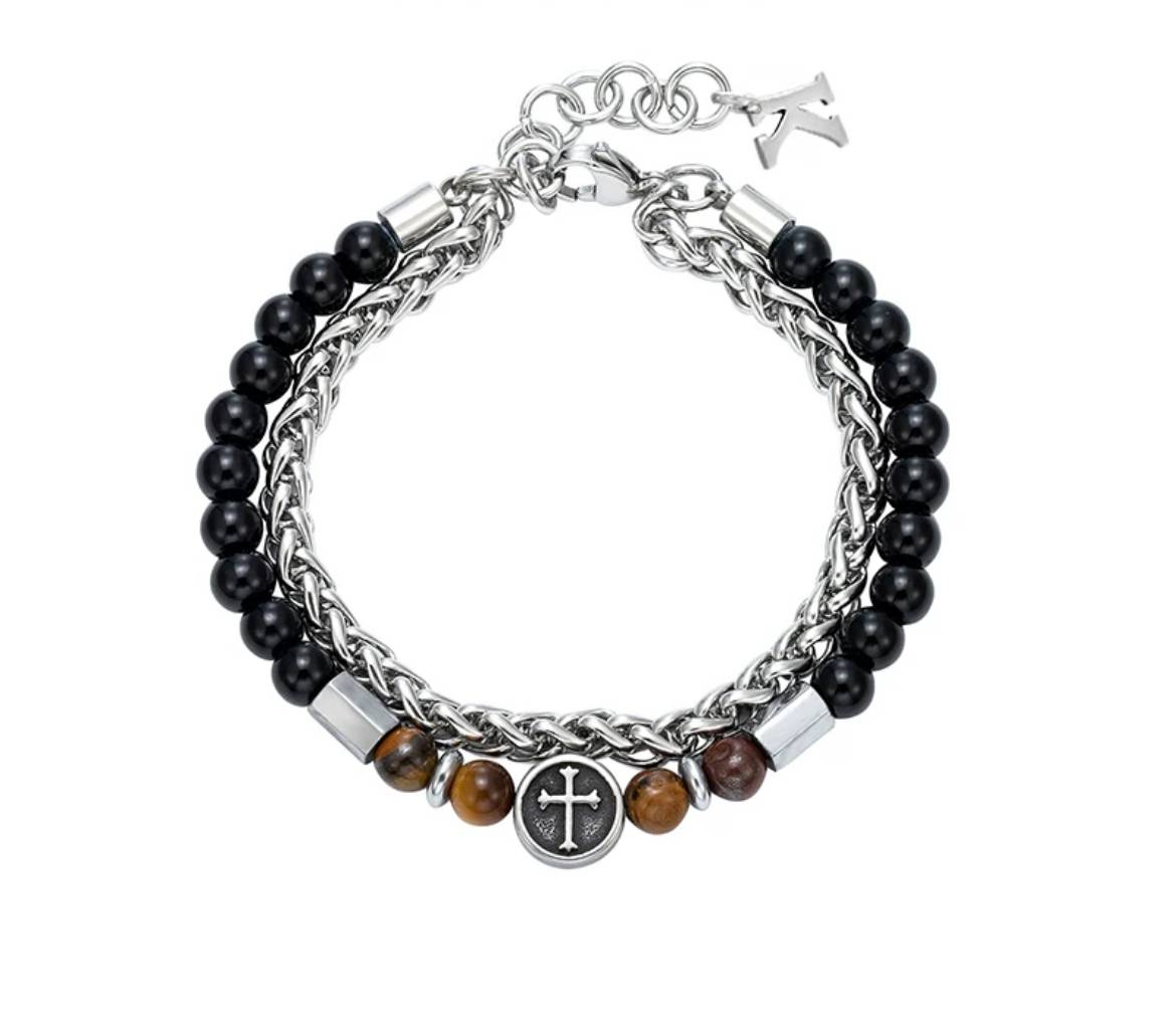 FoD 黑曜石双层虎眼石十字骷髅手链男嘻哈女同款