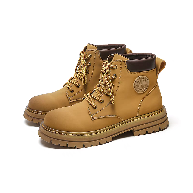 真皮大黄靴男英伦风夏季百搭情侣工装短靴子复古大码高帮马丁靴男