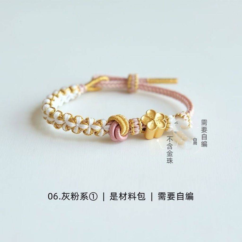 小桃花手链材料包酒窝结自编手绳编织diy手工红绳可穿黄金转运珠