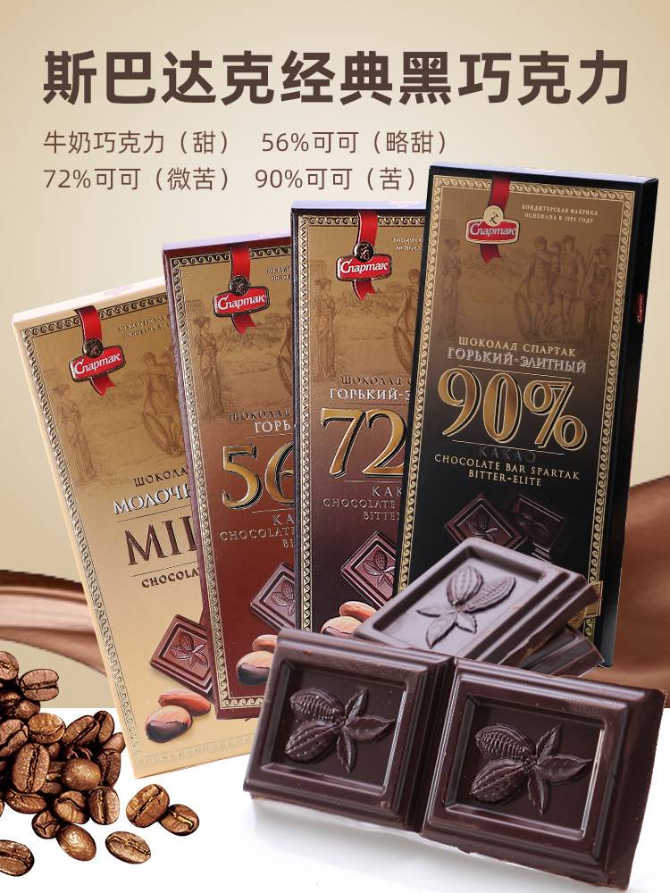 俄罗斯进口纯黑巧克力百分之80纯可可脂斯巴达克经典黑巧超苦90克