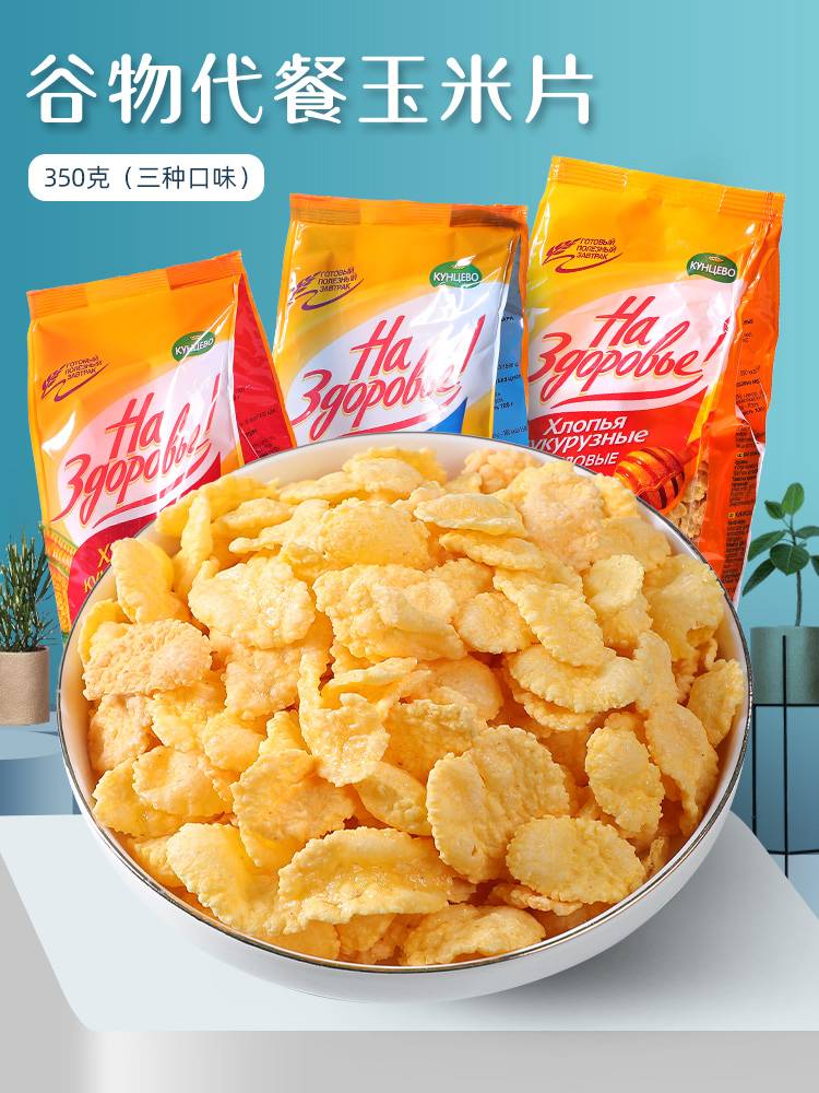 进口俄罗斯玉米片无糖低脂即食早餐干吃稻谷力量麦片代餐零食350g