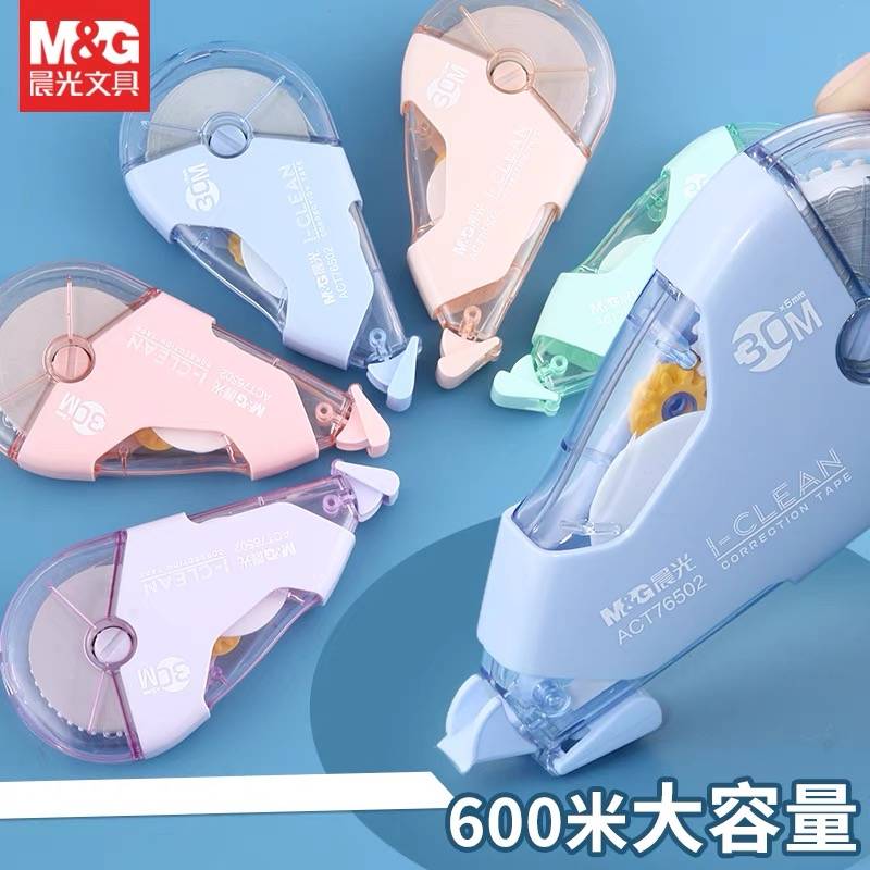 晨光静音修正带60米装学生用超大容量耐摔马克龙色系改正带莫兰迪可爱高颜值女生创意新款文具涂改带送笔批发