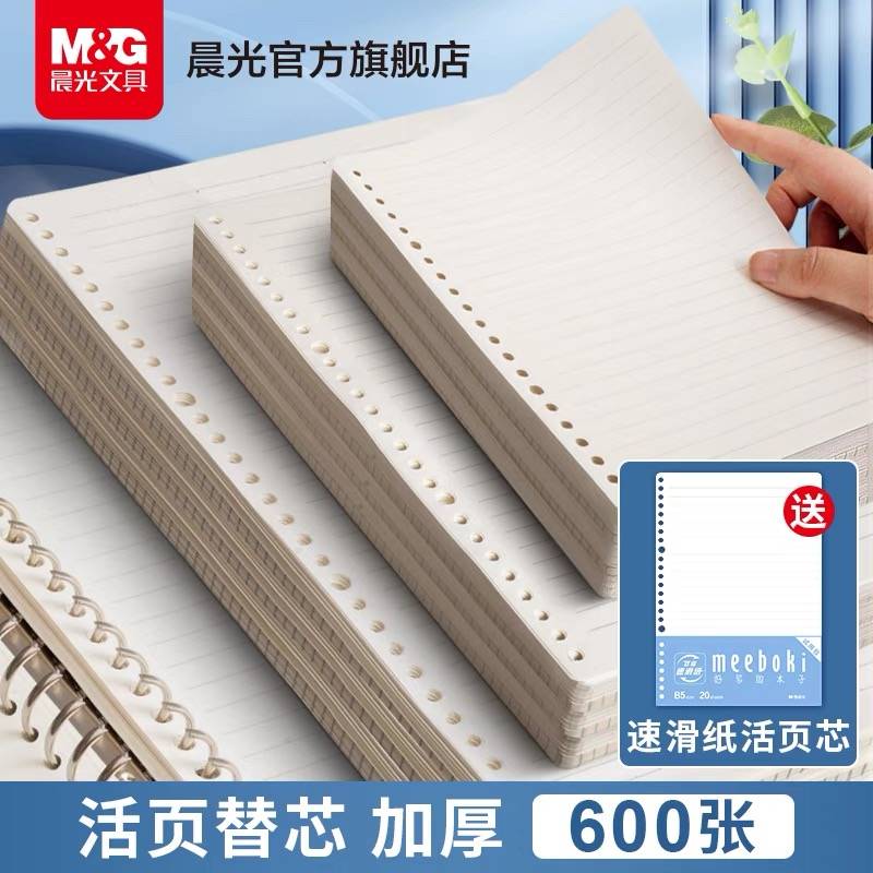 晨光文具活页纸B5学生活页本a5替芯可拆卸外壳26孔B5方格网格纸a4笔记本简约活页夹可替换横线内芯meeboki