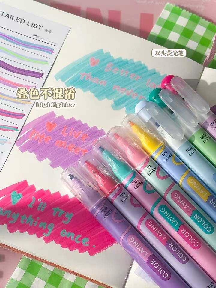 韩酷叠涂叠色双头荧光笔学生用彩色记号笔大容量划重点标记手帐笔