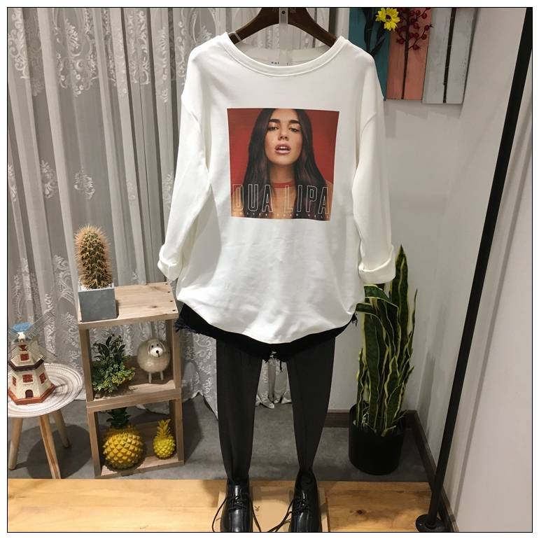 冬季新品7300前印花女人圆领套头加厚百搭宽松韩版休闲女T恤